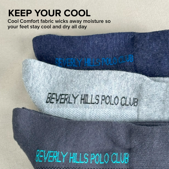 Beverly Hill Polo Club 3 Pieces Cotton Spandex Quarter Length Casual Socks | BMS379146