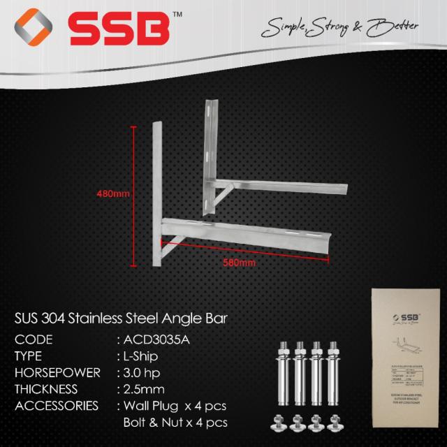PRODUCT DETAIL OF SSB SUS304 STAINLESS STEEL L-SHIP OUTDOOR BRACKET 3.0-3.5HP MODEL: ACD3035A C/W S/S304 BOLT AND NUT & WALL PLUG