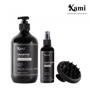 KAMI Hair Loss Control Shampoo + Anti-Hair Fall Scalp Serum + Scalp Massager Set